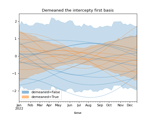 )Using a demeaned basis to remove “intercept” effect of first basis: