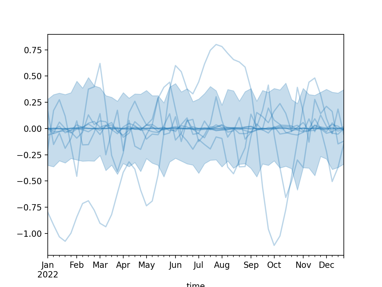 import numpy as np import pandas as pd import matplotlib.pyplot as plt from pymc_marketing.mmm import HSGP seed = sum(map(ord, "Change of covariance function")) rng = np.random.default_rng(seed) n = 52 X = np.arange(n) hsgp = HSGP.parameterize_from_data( X=X, cov_func="matern32", dims="time", ) dates = pd.date_range("2022-01-01", periods=n, freq="W-MON") coords = { "time": dates, } prior = hsgp.sample_prior(coords=coords, random_seed=rng) curve = prior["f"] hsgp.plot_curve(curve, random_seed=rng) plt.show()