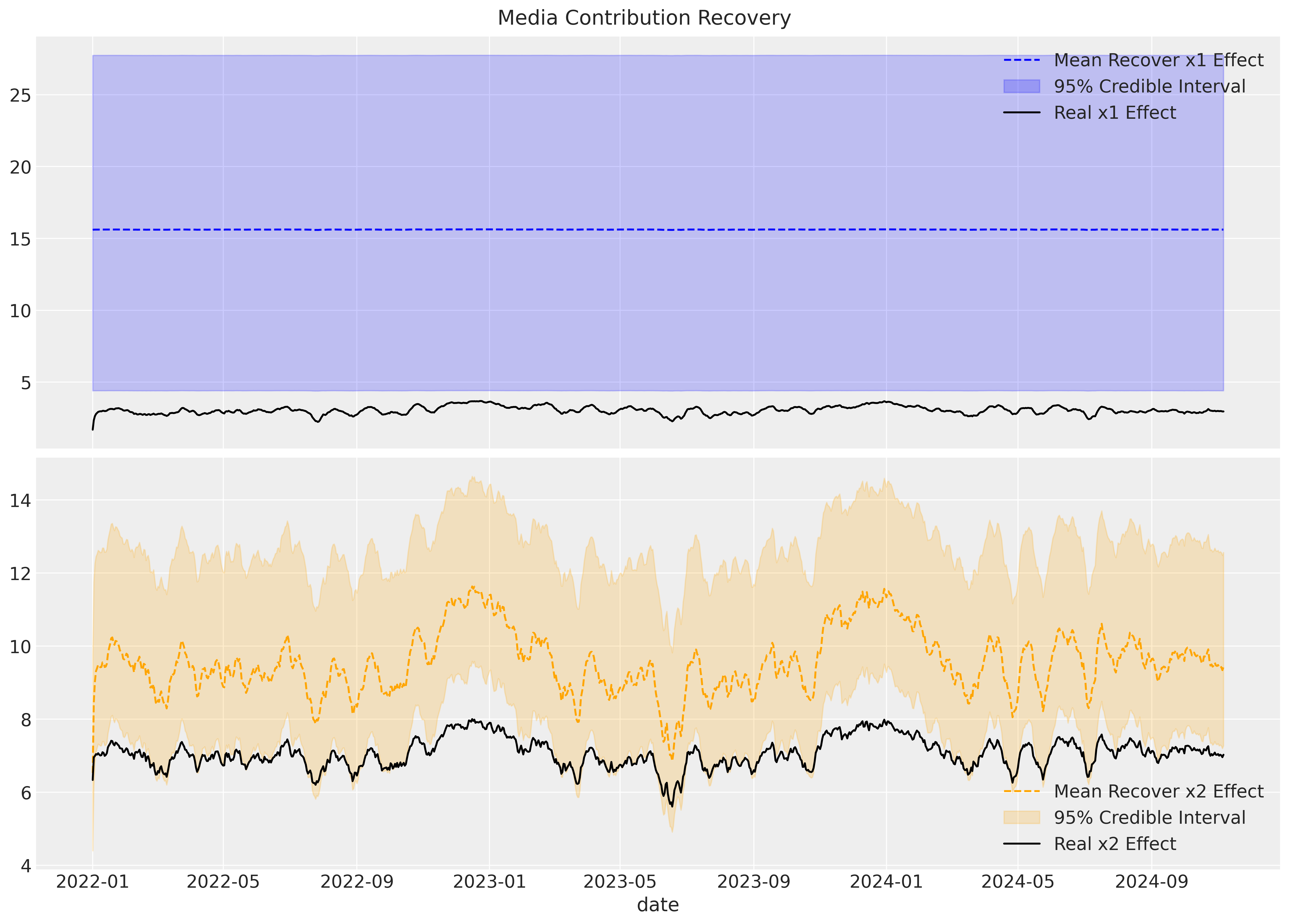 Lets observe the recovered effect of our treatment variables (\(x1\) and \(x2\)) and as usual the not so causal model fit 👀