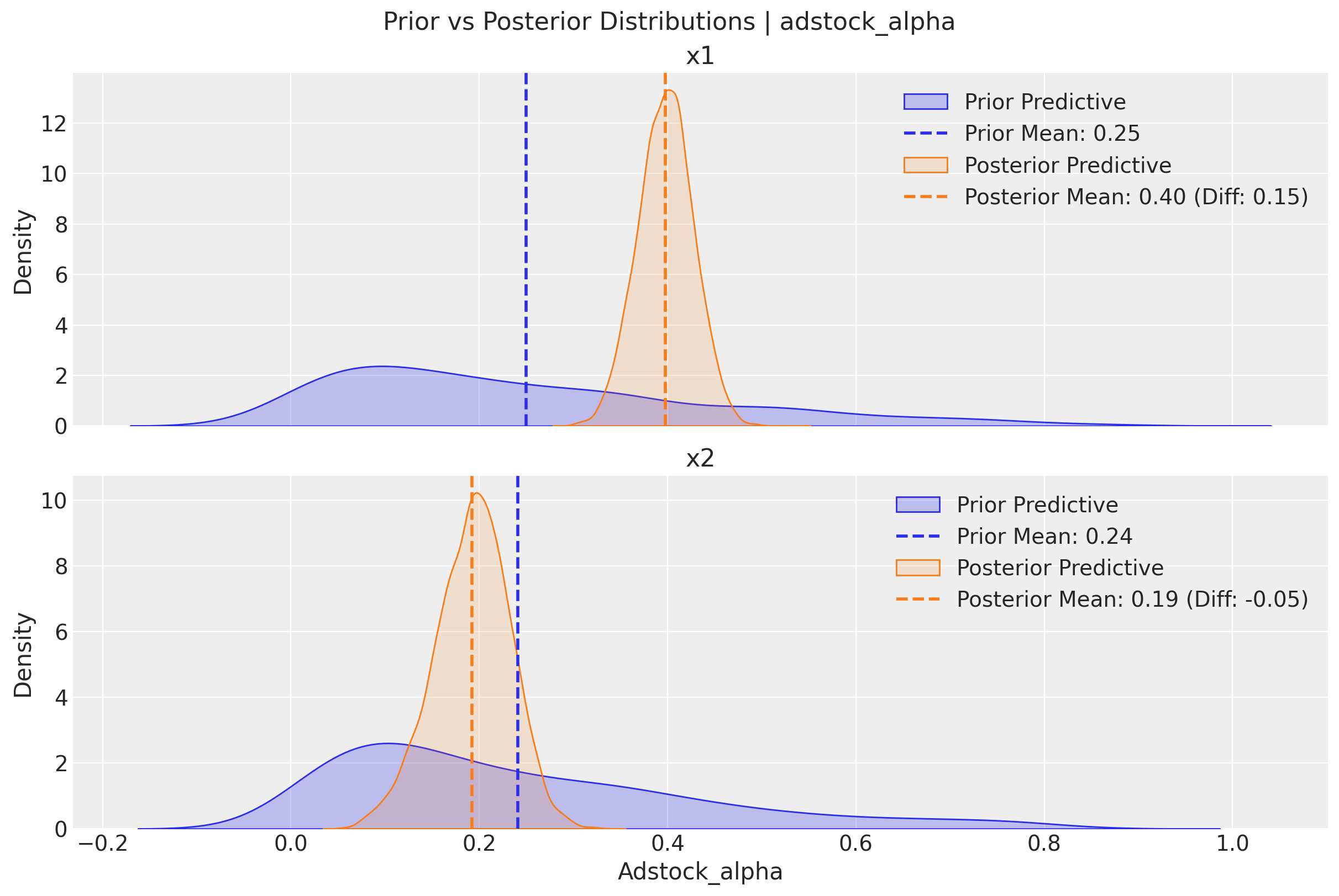 We can also visualize how our prior beliefs compare to the posterior distributions using the plot_prior_vs_posterior
