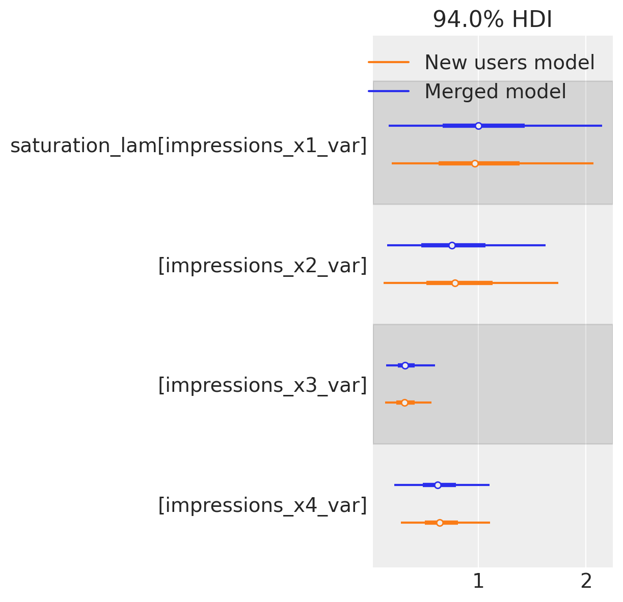 data=[temp.posterior.saturation_lam, new_users_idata.posterior.saturation_lam],