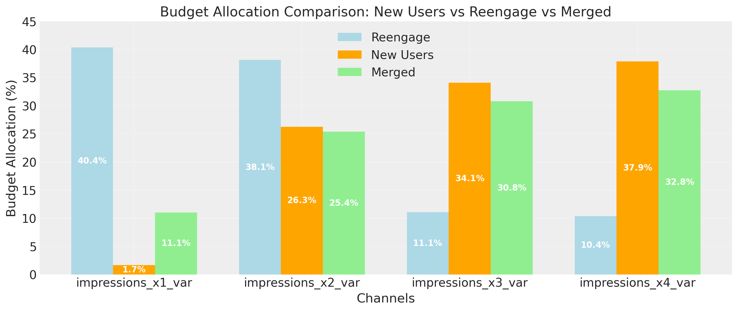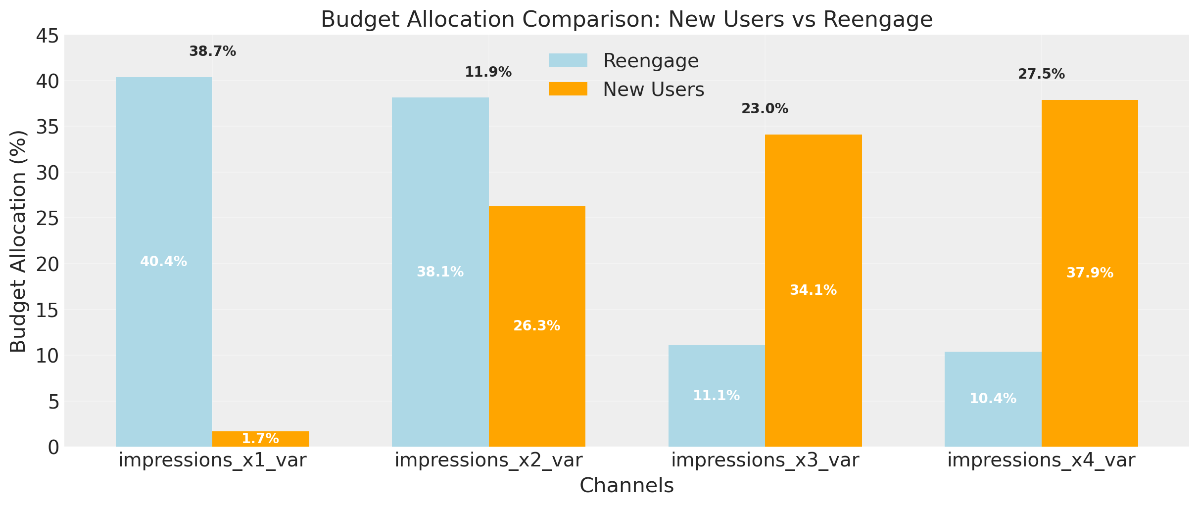 library. This method allows us to tackle tricky trade-offs—like maximizing new users while also re-engaging existing ones—by reformulating the problem as a constrained optimization. We can maximize one objective while ensuring another meets a minimum performance level, which helps us find a balanced budget allocation without compromising important business objectives.