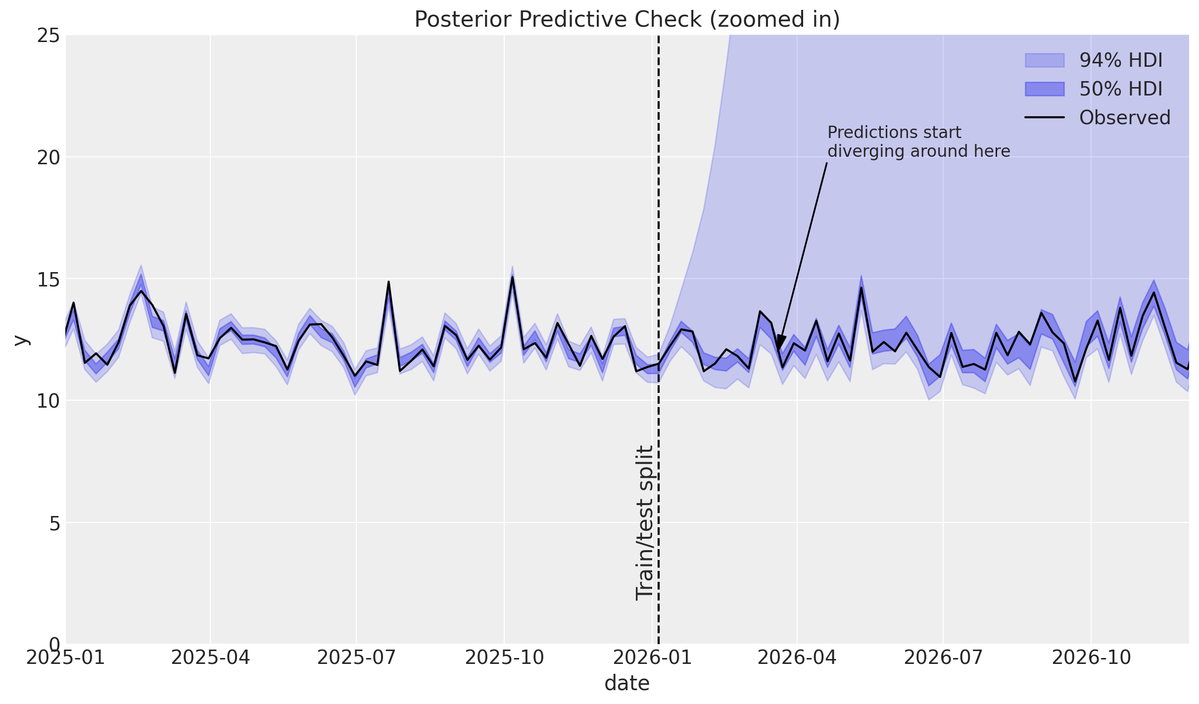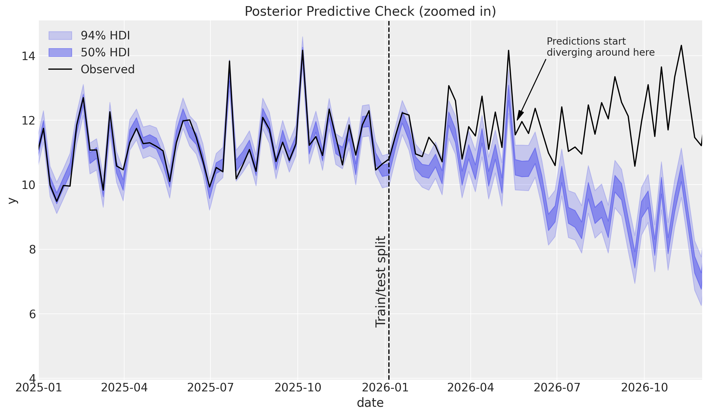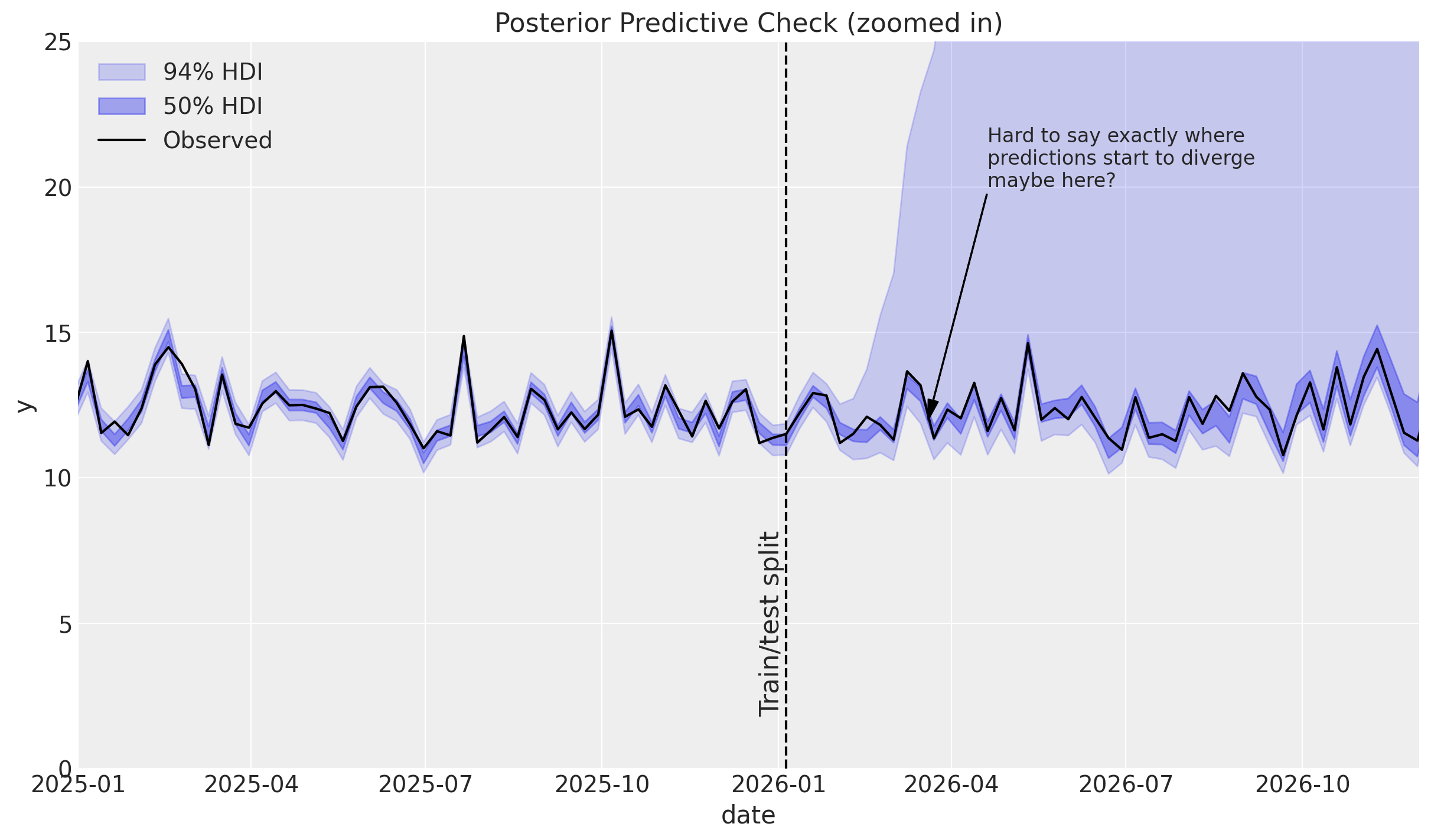 💥 ~3 months into the out-of-sample set, uncertainty explodes.