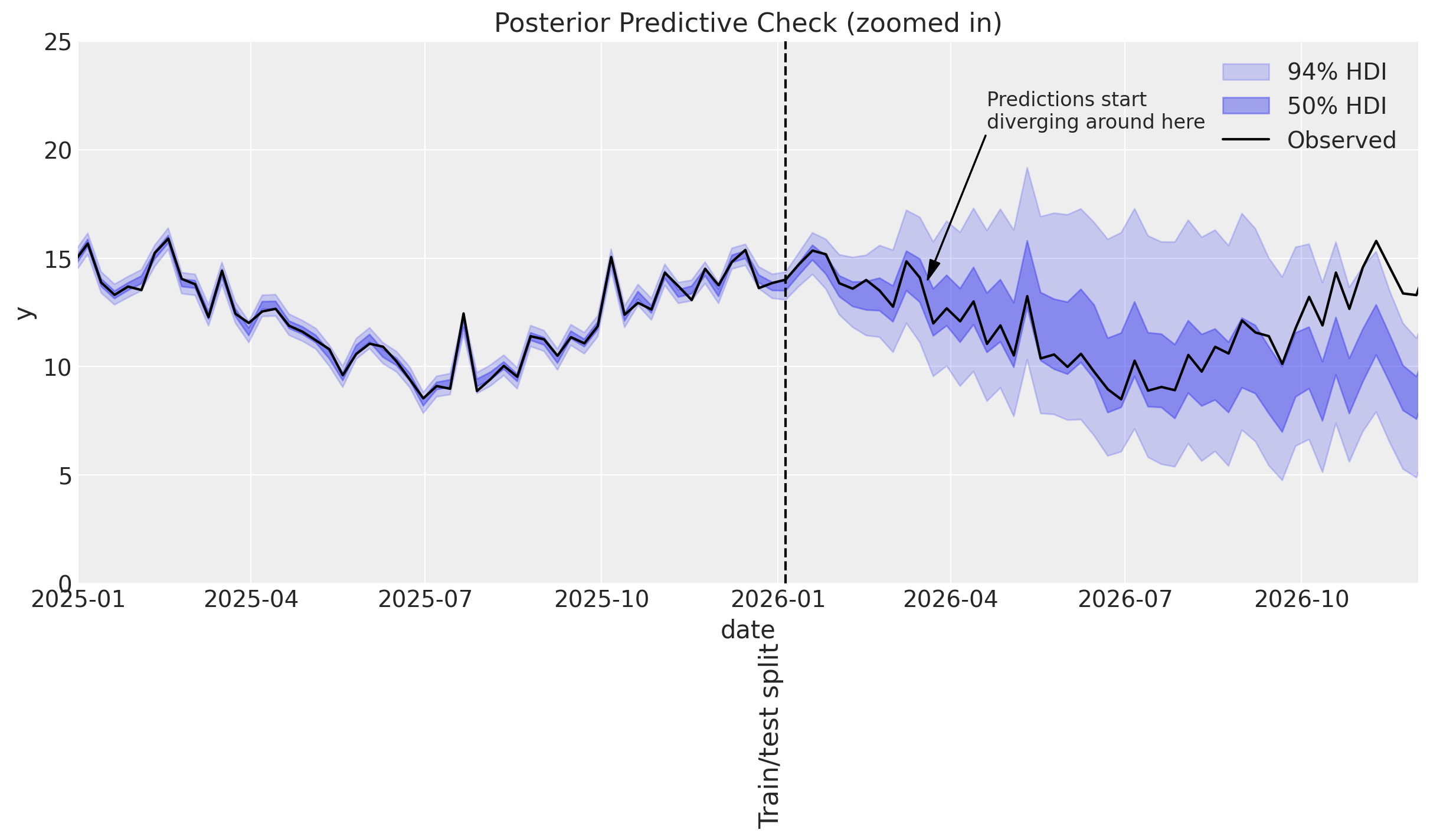 💡 Let’s try to refit the model with a shorter length scale prior mean of one year (52.18 weeks).