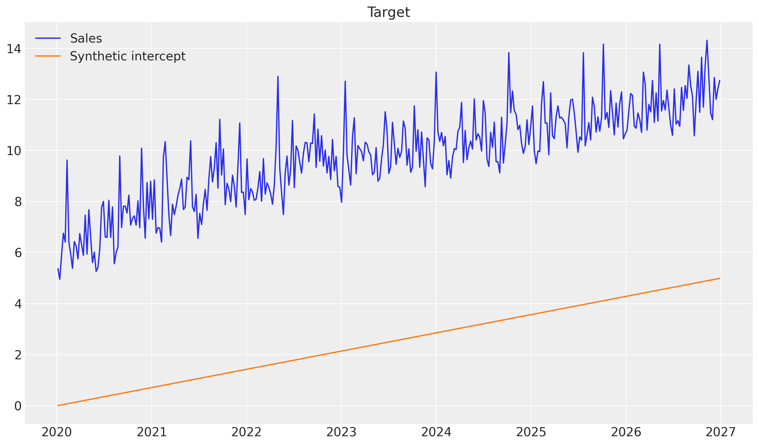 👉 In this notebook, we demonstrate how—and when—to use a time-varying parameter for intercept in an MMM, using pymc-marketing